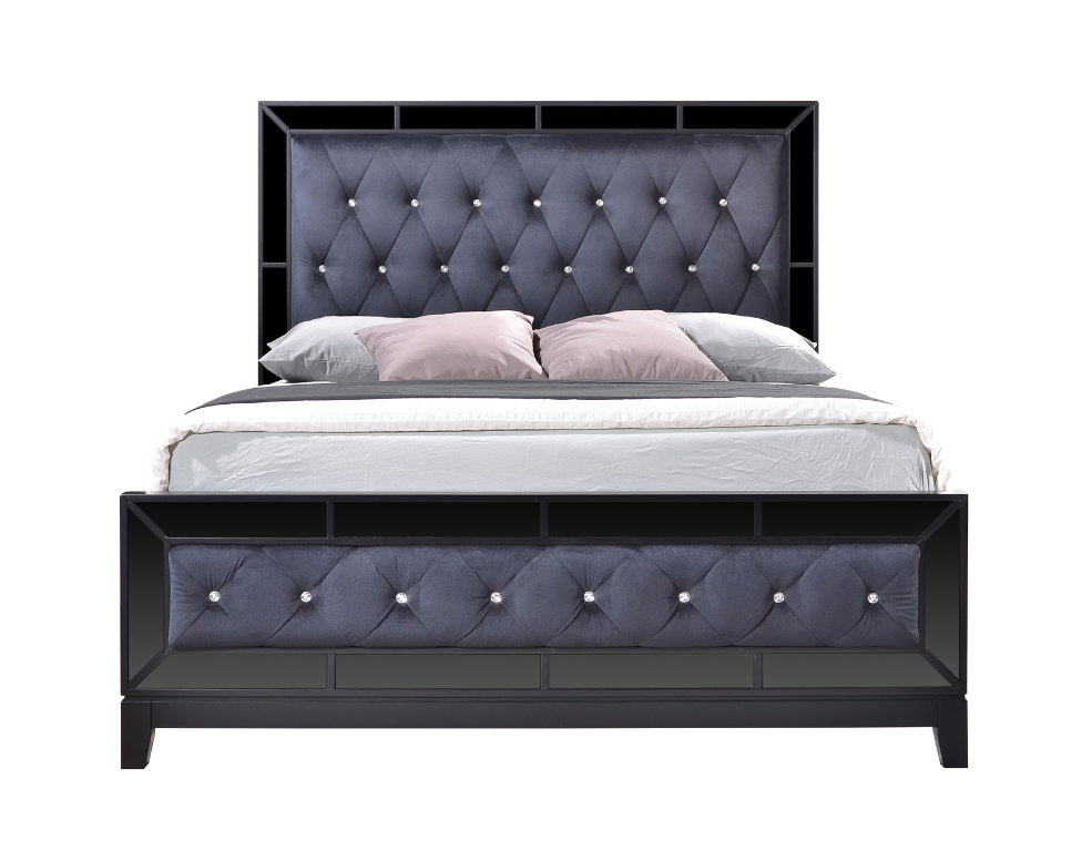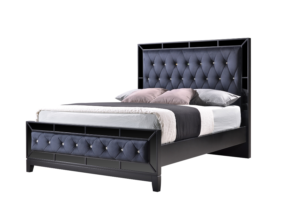 Dalton Bed Frame – Upholstered Crystal-Tufted Headboard