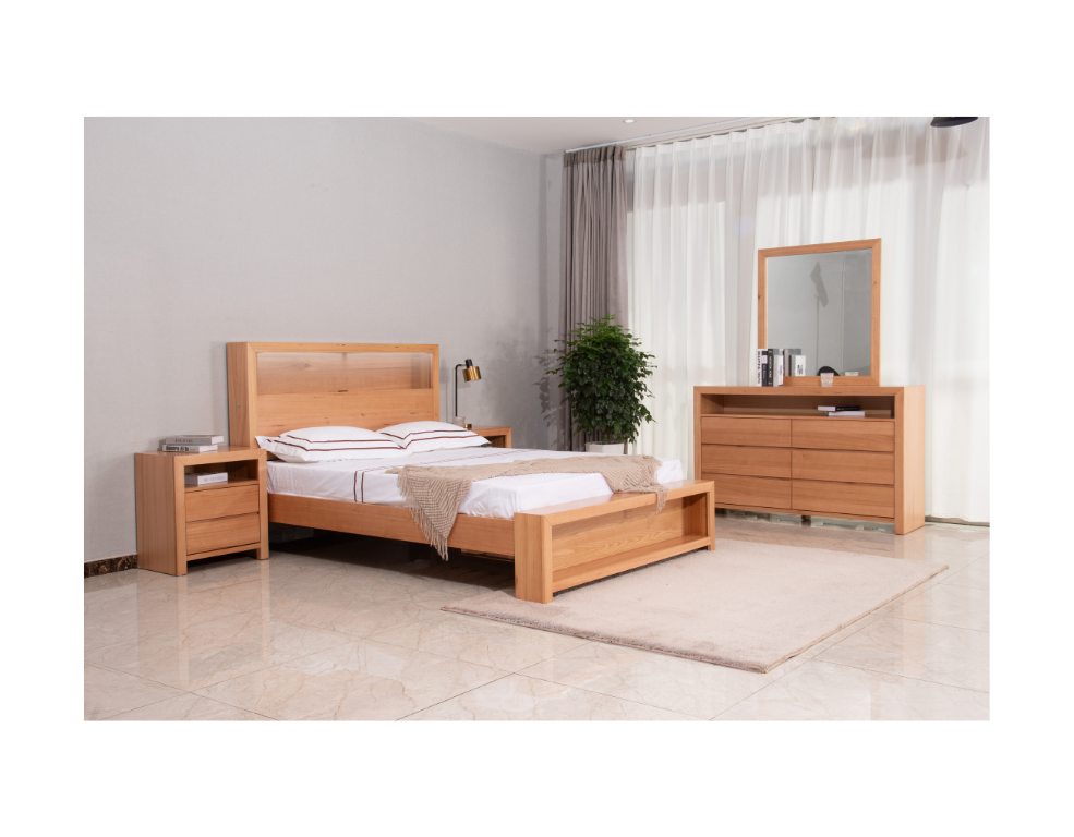 Emerald Bed Frame – Messmate Timber with LED Headboard & USB Ports
