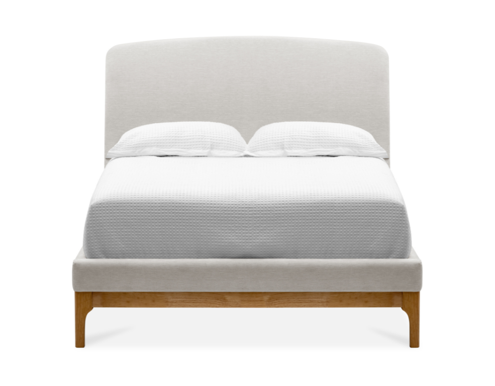 Torino Bed Frame – American Oak with Curved Design & Linen Headboard