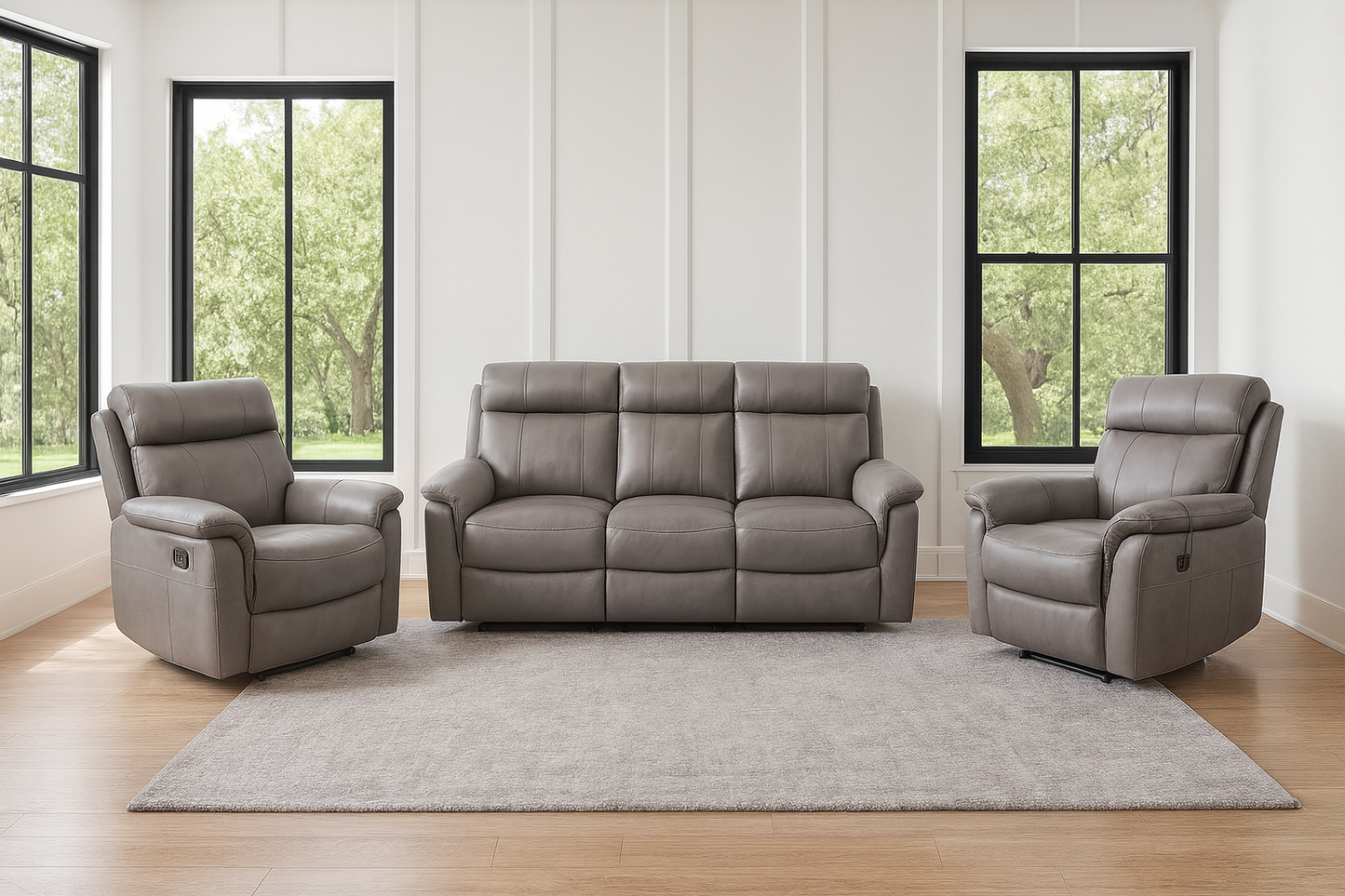Hamilton 3 Piece Recliner Lounge Suite – Thick Leather with USB Ports