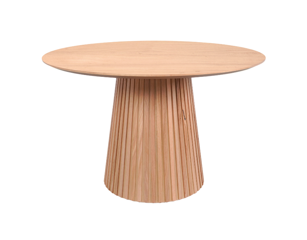 Nemesis Round Dining Table – Messmate Timber with Ribbed Base