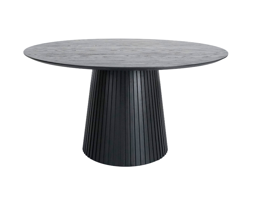 Halo Round Dining Table – Ribbed Base in Black Oak Finish