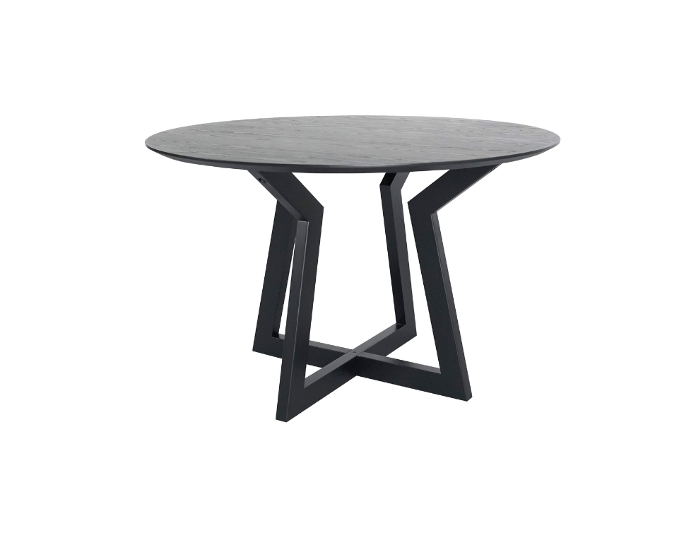 Buxton Dining Table – Black Wash Hardwood Top & Metal Legs