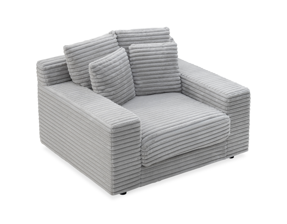 Dreamer 1 Seater Lounge Suite – Light Grey Cord with Scatter Cushions