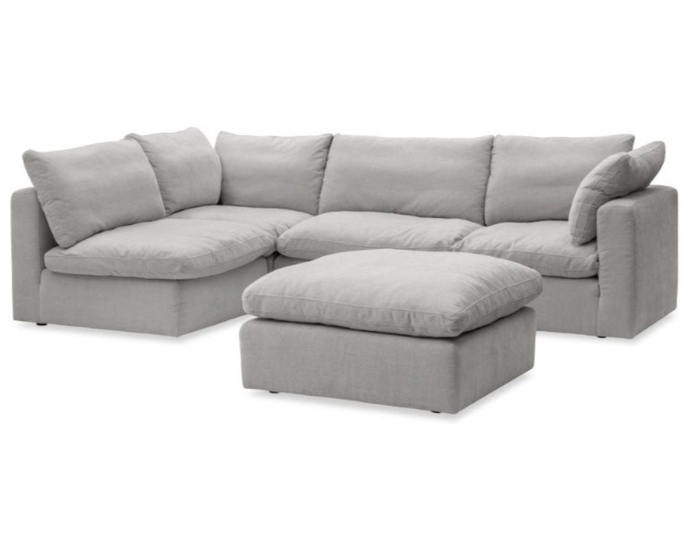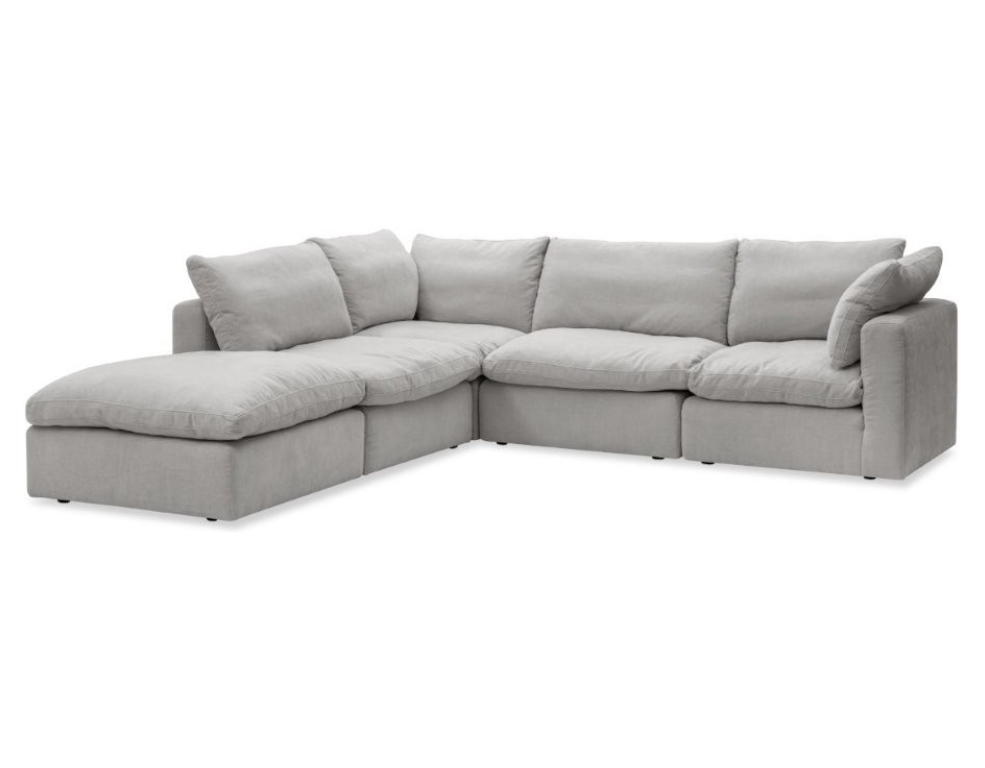 Cartia 4 Seater Modular Corner Lounge with Ottoman – Linen Blend & Feather Fill