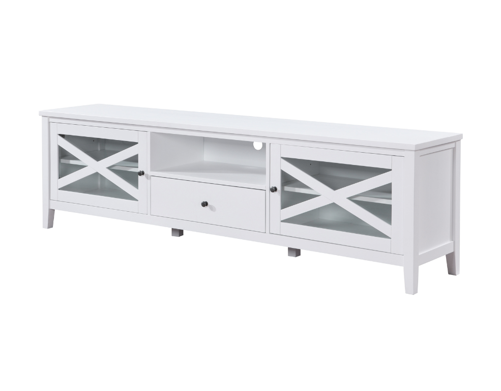 Summer Entertainment Unit – Solid Timber White with Glass Doors