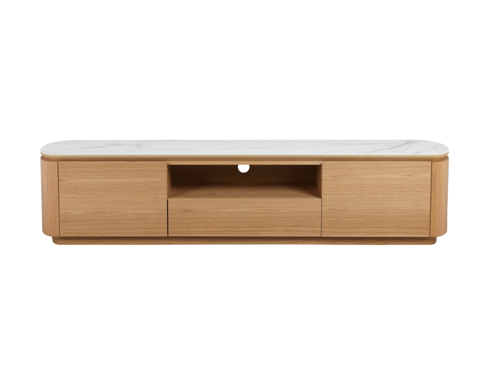 Isabella TV Unit – Ceramic Gloss Top with Oak Veneer Base