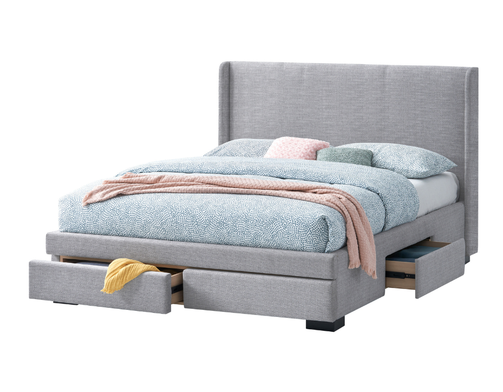 Armande Bed Frame – Winged Headboard with 4 Storage Drawers