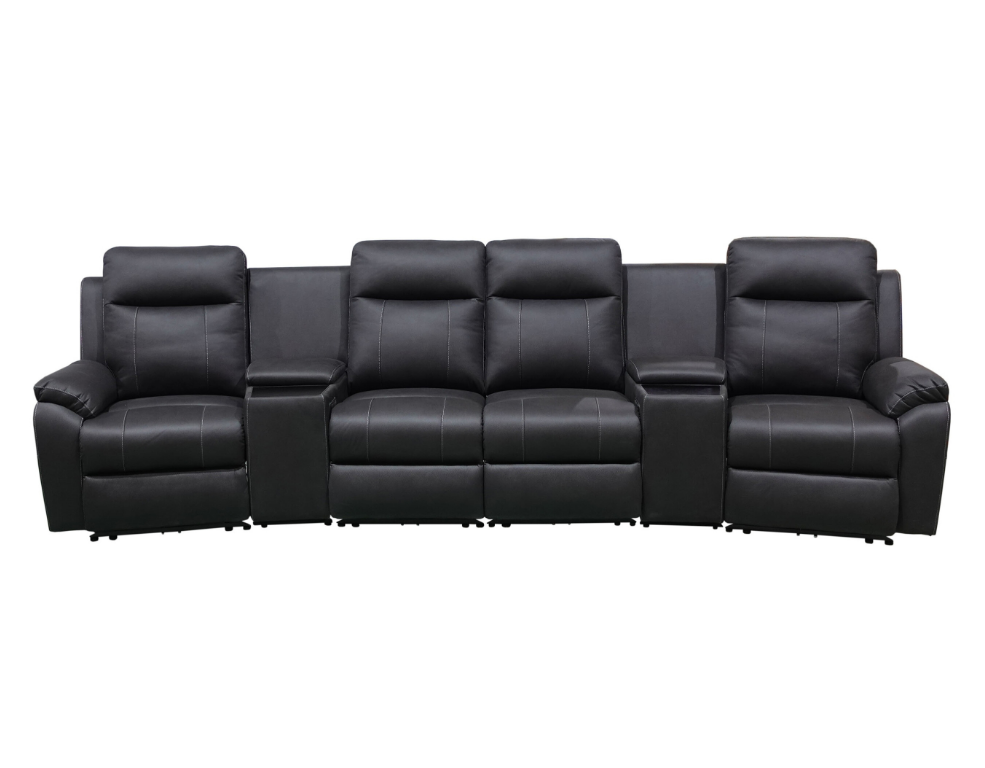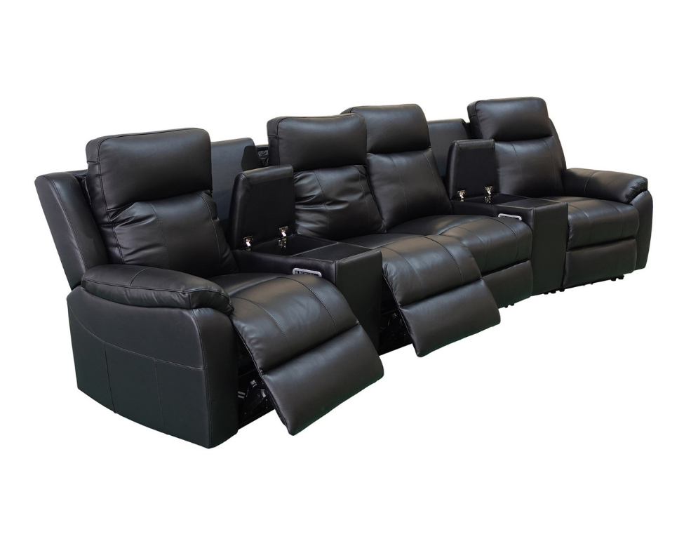Luximo 4 Seater Theatre Recliner - Thick 100% Leather & Adjustable Headrest