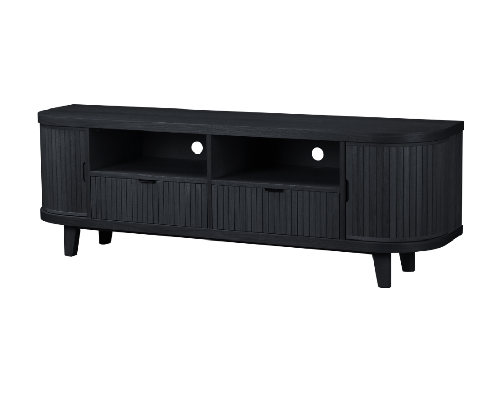 Brampton TV Unit – Satin Black Oak with Curved Front Design
