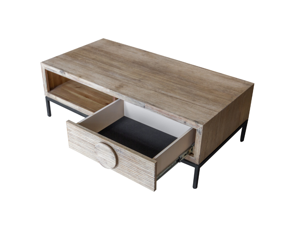 Imani Coffee Table – Industrial Style with Drawer, Shelf & Metal Legs